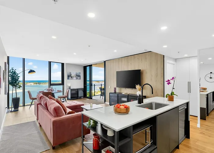 Appartement Elevated 2Br Broadwater Ocean Views à Gold Coast spacieux est situé dans le quartier Southport, juste à quelques pas d'Anzac Park. Les clients peuvent piquer une tête dans une piscine pour se détendre après une longue journée.